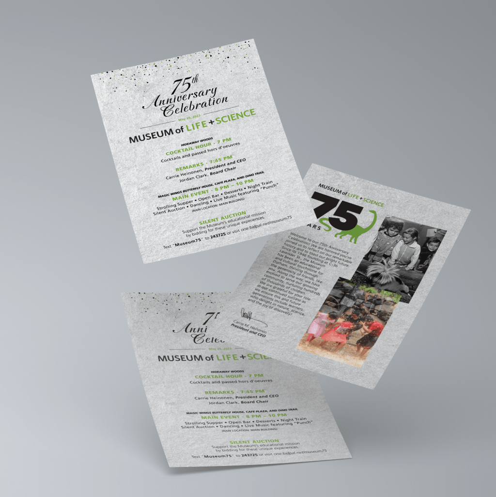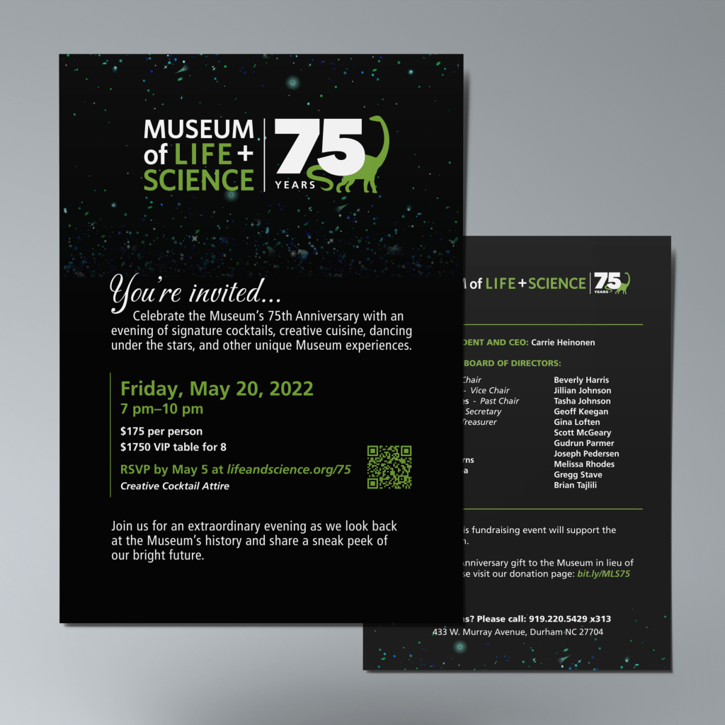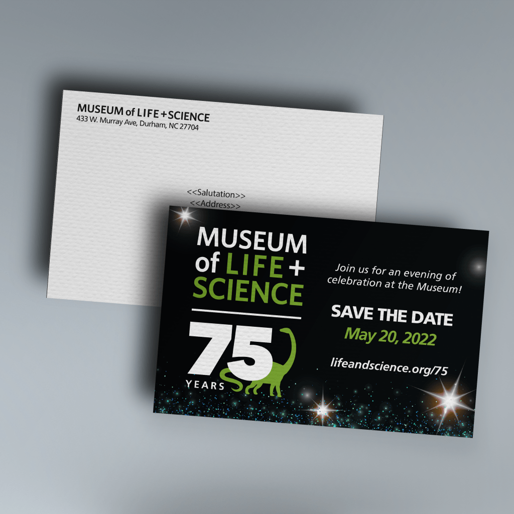 Explore the past. Discover the future. The Museum of Life and Science celebrated their 75th anniversary, Summer 2021. Developing this branding required a deep exploration into the history of the institution. I strove to envelope the unique impact the Museum had on the local community and science education at large.